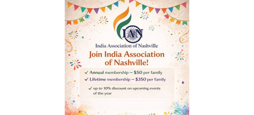 Your membership is a commitment to creating a strong Indian community from within, working collectively toward cultural visibility, recognition, and respect across middle Tennessee.